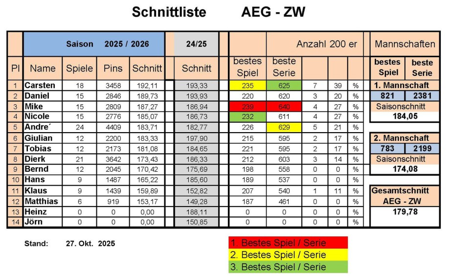 Die neue Saison 2025 / 26 hat begonnen. Allen unseren Spielern eine erfolgreiche Saison und